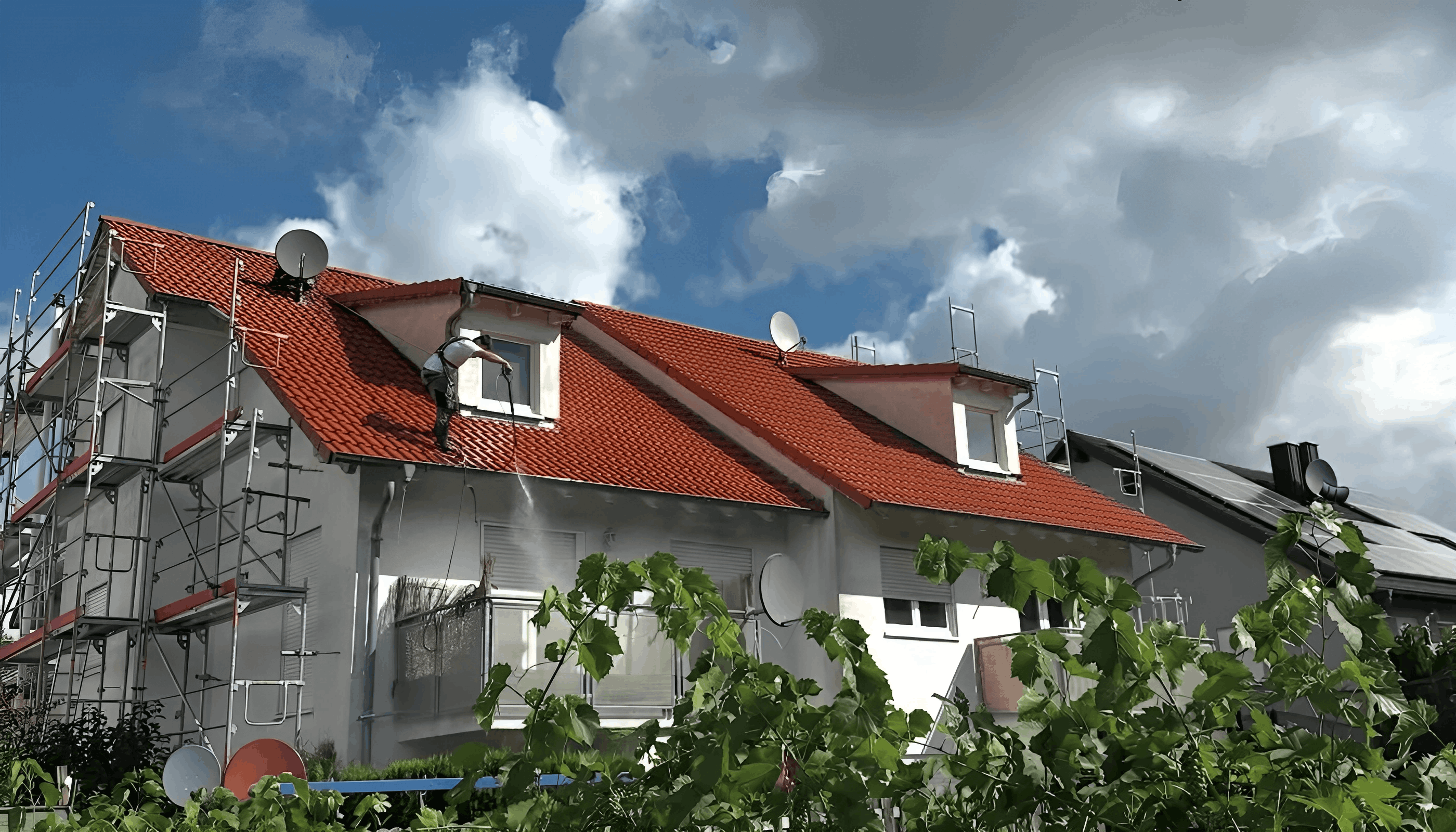 Eine Dachreinigung schützt vor Feuchtigkeitsschäden, verlängert die Lebensdauer des Daches und hilft, größere Reparaturen zu vermeiden.